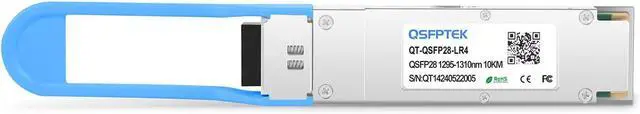 100G QSFP28 Single-Mode Transceivers: 100Gb/s data rate, LC duplex connector, 4 LWDM Lanes: 4 LWDM lanes: 1295nm, 1300nm, 1305nm,1309nm, up to 10km, working temperature: 0 ~ +70, Tx Power(dBm): -4.3 ~ +4.5, Rx Sens.(dBm): -10.6.