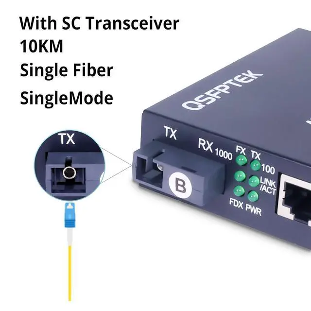 Automatically : 10/100/1000Base-Tx to 1000Base-FX, adapts to 10 Mbit/s, 100 Mbit/s (Fast Ethernet) or 1000 Mbit/s (Gigabit) Speed And Extends Ethernet over Single Mode Single Fiber to up to 10 km. full Duplex or half Duplex, Supports MDI/MDIX auto-crossover, Complies with IEEE 802.3/802.3u/802.3z/802.3ab.