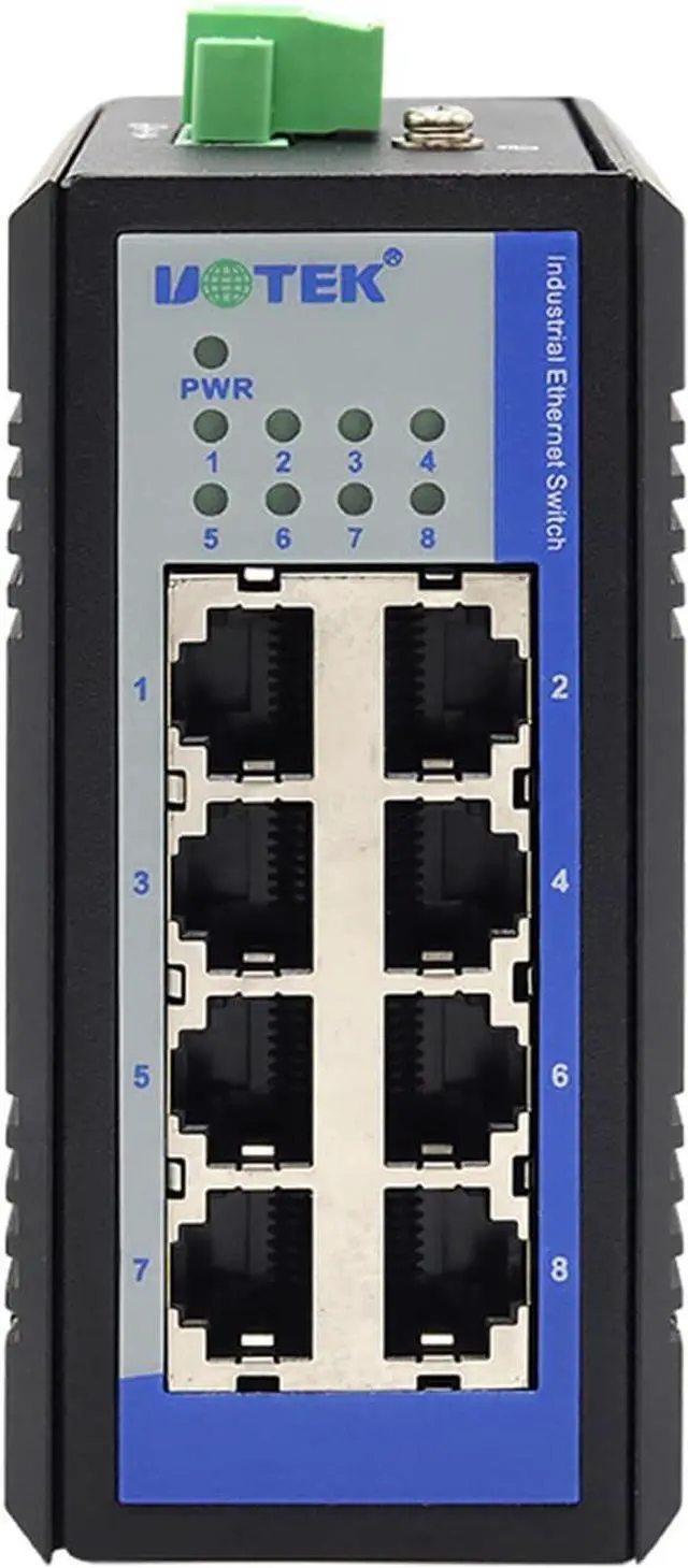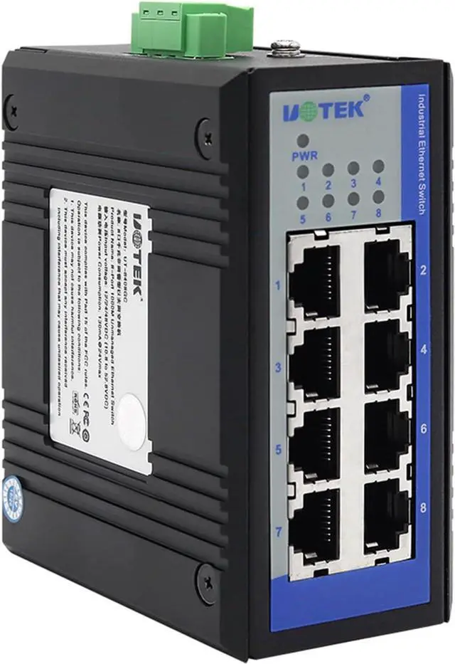 This 8-port Gigabit unmanaged Ethernet switch provides positive and negative DC input protection to prevent instrument burn-in.