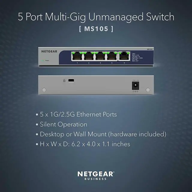 NETGEAR 5-Port Multi-Gigabit Ethernet Unmanaged Network Switch (MS105) - with 5 x 1G/2.5G, Desktop or Wall Mount, and Limited Lifetime Protection