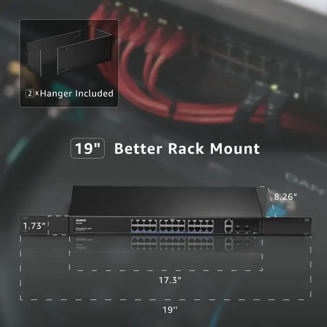 Rackmount or Desktop: Supports automatically detect devices, just plug in the power cord and network cable, no configuration is required. Aumox is more intelligent and efficient to determine the power supply priority. And it supports rackmount desktop or wall mount placement, the 19-inch length compatible with more switch racks, providing with more mounting options.