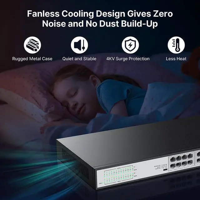 STANDARD POE SWITCHPD Detection, Automatically detect and provide required power for your PoE devices and protect your non-PoE equipment from being damaged. PoE Extension data transmission up to 600ft long distance if needed (Transmission Speed will be reduced to 10Mbps if extend function is operating, must use high quality cable)