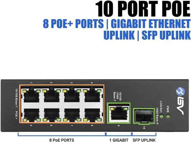 Enhanced Flexibility: With 8 PoE+ ports at 10/100Mbps and a 1 Gigabit Ethernet Base-T at 10/100/1000Mbps, this switch offers flexible device placement, especially in areas with limited power sources.