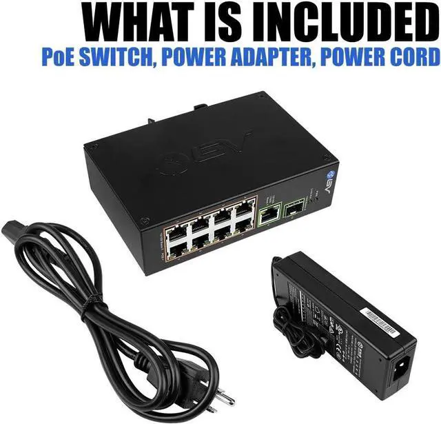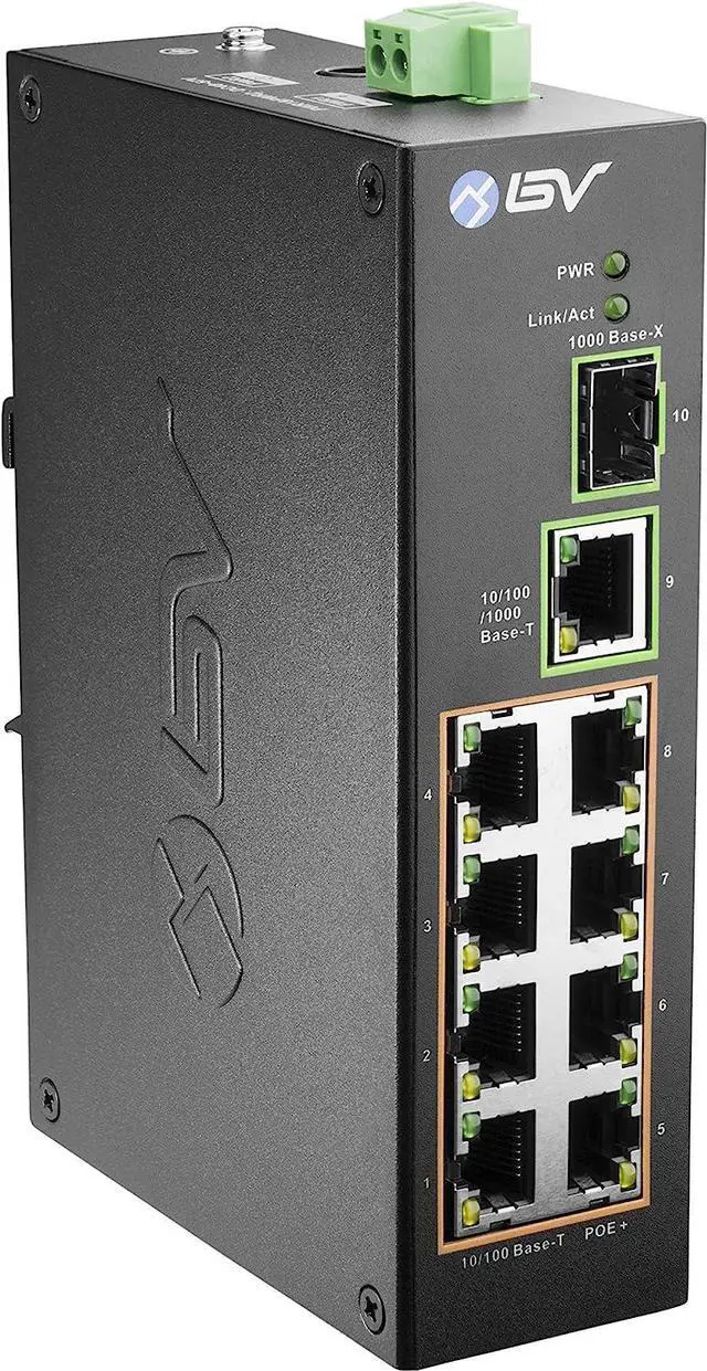 BV-Tech 8 Port PoE Switch with 1 Gigabit Uplink and Industrial DIN Rail - Power Over Ethernet Network Switch for IP Cameras, VoIP Phones, Wireless APs - IEEE802.3af/at, Wide Temperature Range