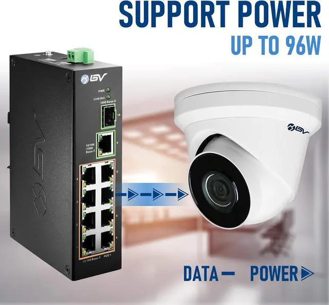 Seamless Power Distribution: Power and manage IP cameras, VoIP phones, and wireless access points with ease using the BV-Tech 8 Port PoE Switch. No additional cables or outlets required.
