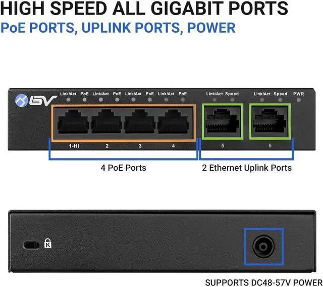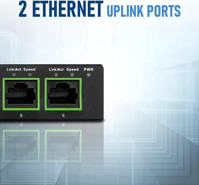 4 Gigabit PoE+ Ports and 2 Ethernet Uplink Ports at 10/100/1000 Mbps each, making network setups easier and more convenient.