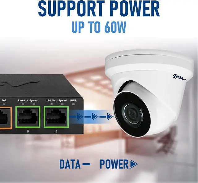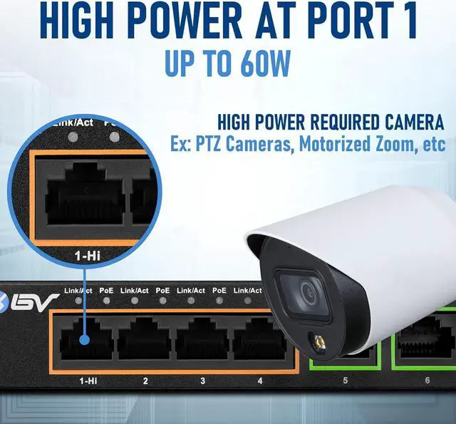 Hi-PoE at port 1 providing up to 60W single port, PoE+ at port 2-4 up to 30W per port, which is better than normal PoE port that can only provide 15.4W per port. 60W Max Total Power (includes 60W DC adapter).