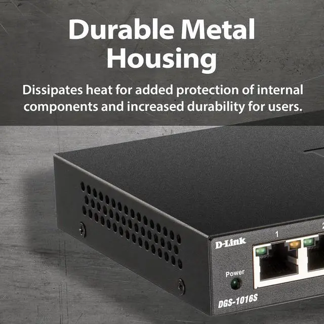 SLIM DIMENSIONS - The DGS-1016S packs full functionality and Gigabit performance into a slim yet sturdy metal design.