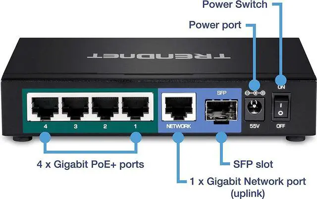 12Gbps switching capacity 65W PoE power budget Reduces equipment cost by delivering data and power over existing network Cables Ieee 802.1P QoS and DSCP pass-through support Compact wall-mountable metal housing, fanless design