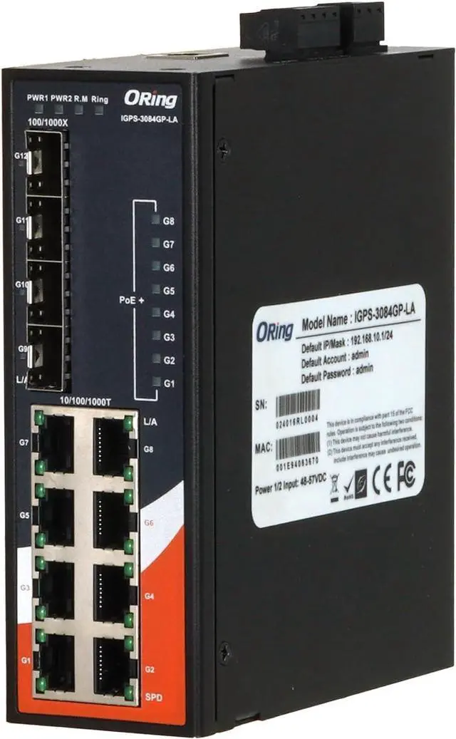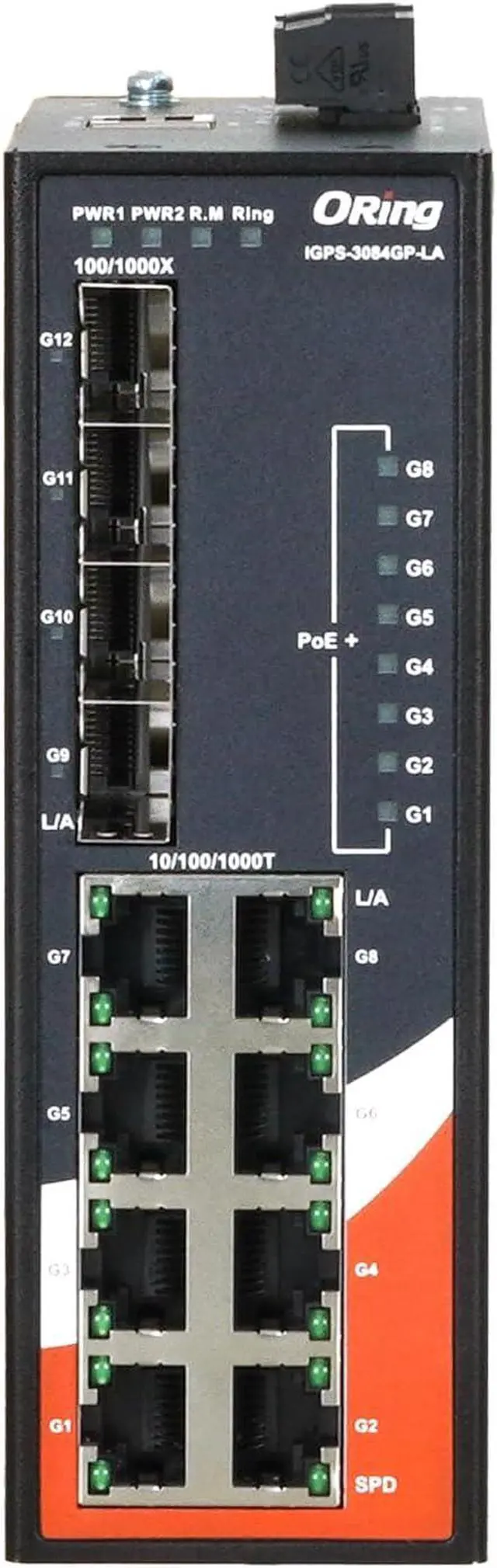 Providing 8*10/100/1000Base-T(X) PoE ports and 4*100/1000Base-F(X) SFP sockets.