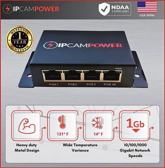 POWERED BY INCOMING POE - This switch operates best with 30 watts of incoming POE, but can function at reduced capacity with lower wattage. It uses 5W for itself and channels remaining power to the 3 outputs. Compatible with standard POE types ( 802.3 af/at/bt), utilizing max 30W. Output wattage budget is 25W total, shared across 3 ports (up to 25W per port).