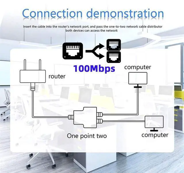 Easily convert your RJ45 outlet to two RJ45 sockets with this network splitter