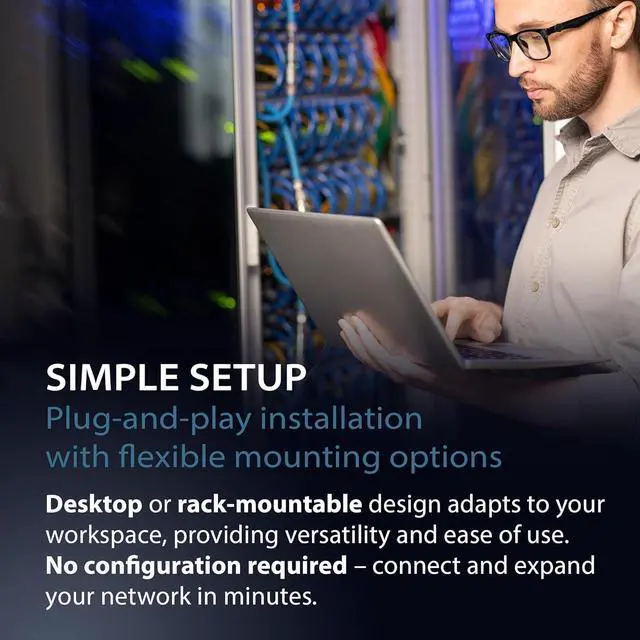 PLUG-AND-PLAY INSTALLATION Simple setup with no configuration required; connect and expand your network in minutes with hassle-free installation