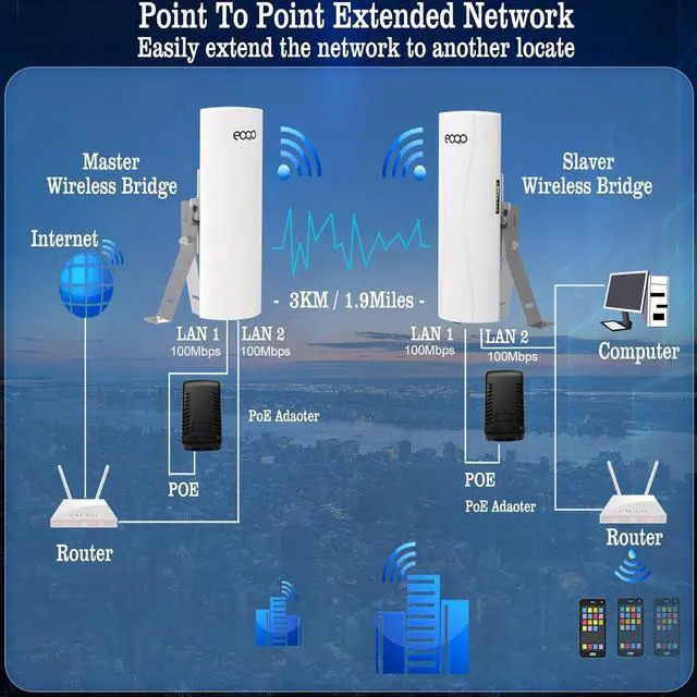 Extend your home internet coverage to multiple locations, allowing you to share the same network seamlessly with your garage, barn, stable, warehouse, workshop, and other outbuildings.
