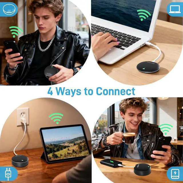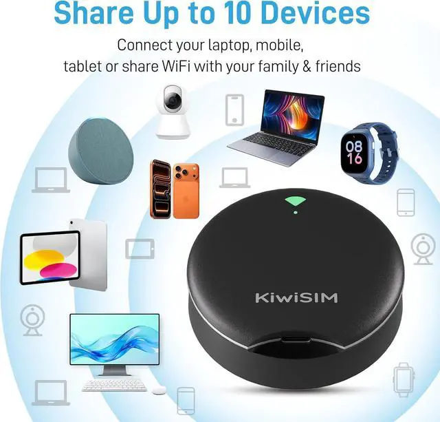 KiwiSIM mobile hotspot supports simultaneous connection of 10 devices, making it suitable for work, gatherings, and entertainment.