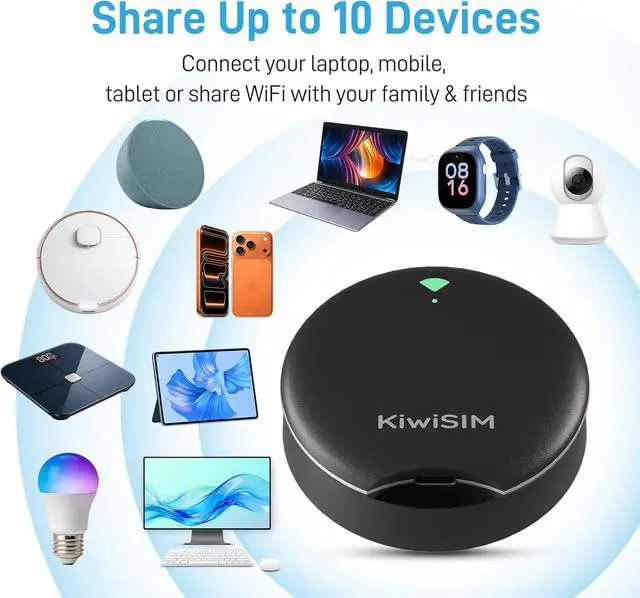 KiwiSIM mobile hotspot supports simultaneous connection of 10 devices, making it suitable for work, gatherings, and entertainment.