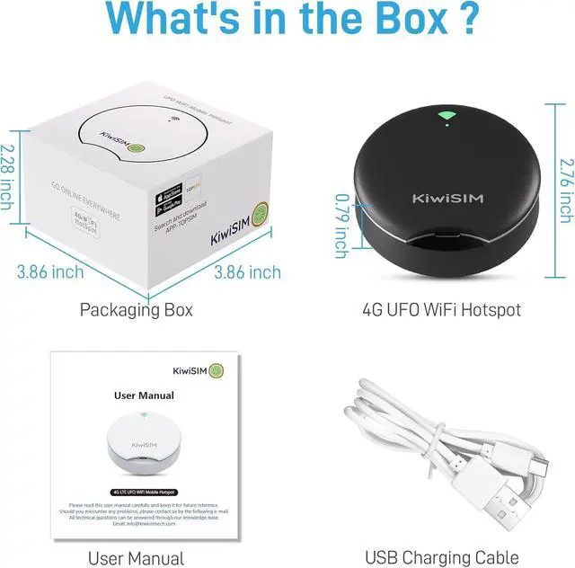 KiwiSIM portable WiFi is only 2.5 inches and 2.8 ounces, with a mini size that is easy to carry and convenient to use.