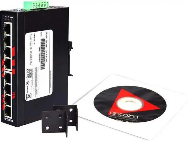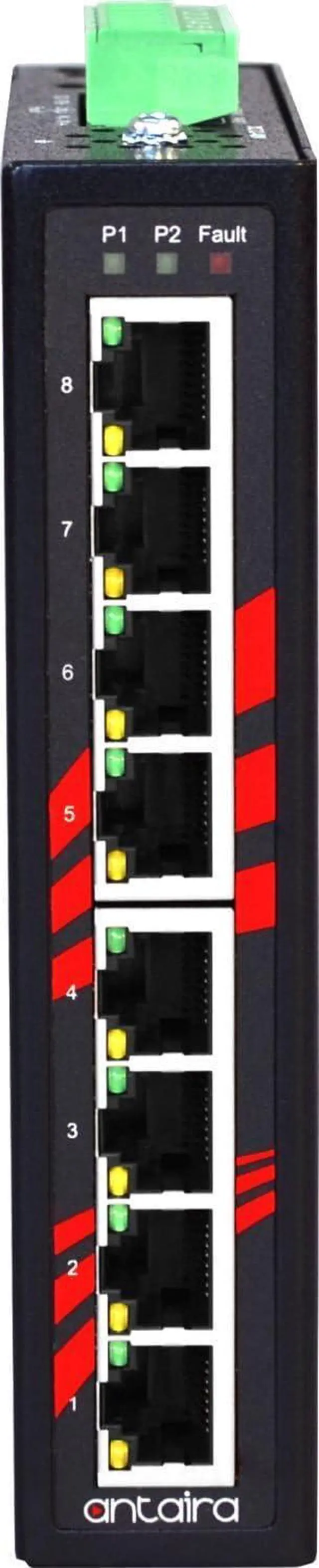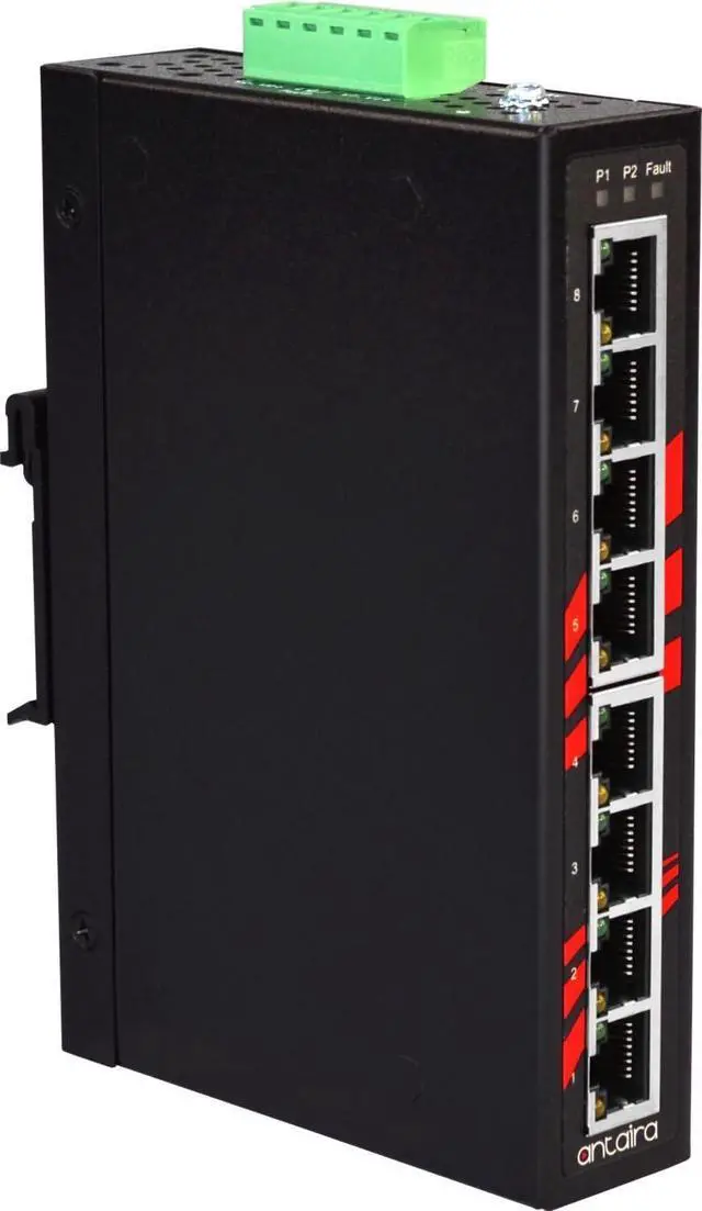 Antaira Technologies LNX-800A series 8-Port Slim industrial unmanaged Ethernet switch is IP30 rated and DIN-Rail mountable. Each unit is designed with five 10/100Tx Fast Ethernet ports that have auto detection support for MDI or MDI-X. The LNX-800A series provide high EFT and ESD protection and the built-in relay warning function alerts maintainers when power failures or port breaks occur. The LNX-800A series includes two models: one with an operating temperature range of -10° to 70°C and the other one with an extended operating temperature range of -40° to 75°C. It is a perfectly designed product to fulfill special needs for industrial automation, outdoor applications, and harsh weather environments.