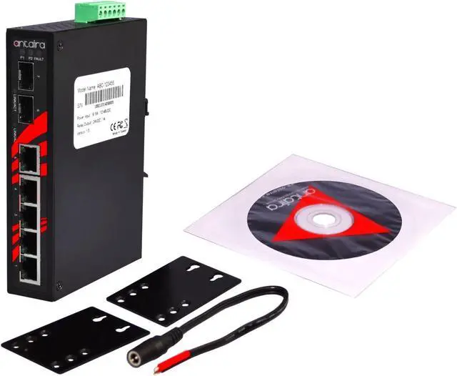 The LNX-0702G-SFP-T switch comes with wall mounting hardware, and 1 DC power cable. Antaira Technologies is a manufacturer of high-quality industrial networking equipment. Backed by a 5 year warranty, you can count on their line of Ethernet switches to perform for the long haul.