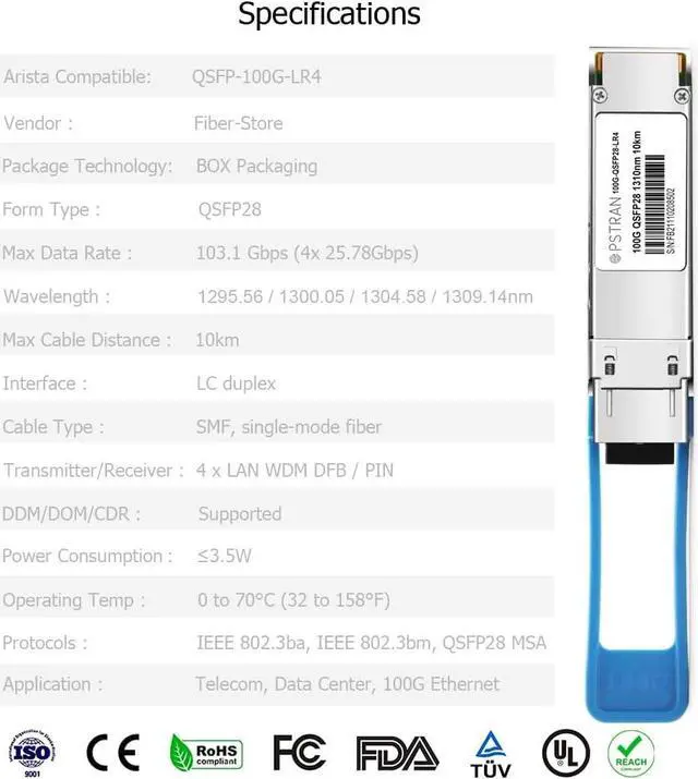 Next page OPSTRAN 100GBASE-IR4 LR4 QSFP28 Optical Transceiver Connectivity Solutions OPSTRAN 100GBASE-IR4 LR4 QSFP28 Optical Transceiver Module video Introduce hero-video 100G Connectivity for Data Center and Telecom Comprehensive Testing Increases Reliability Leading Performance and Quality for 100G Tested by OPSTRAN lab authority in 2024 in Host Devices for Interoperability OPSTRAN 100GBASE-LR4 QSFP+ Optical Transceiver Module Production Line R&D LAB facilities Well-known Certifications