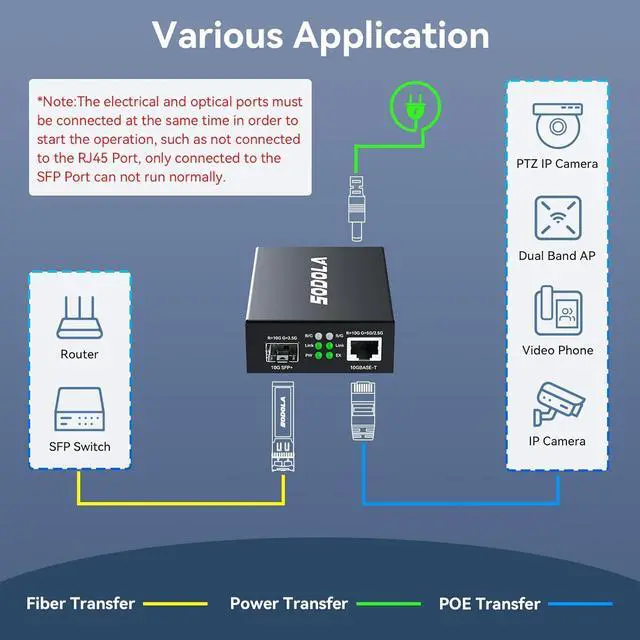 Reliable Fiber-PoE SolutionIdeal for powering remote IoT/security gear via fiber backbone. Reminder: Compatible SFP+ modules required at both ends. ( SFP Modules NOT Included in the package)