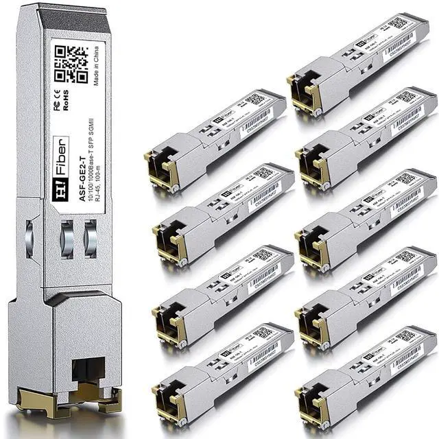 10/100/1000BASE-T SFP: Gigabit Multi-Rate SFP to RJ45 Ethernet Copper Module, Auto-Negotiation 10/100/1000M Data Rate, operates on RJ45 cable (Cat5e/ Cat6/ Cat7) spans of up to 100m (328 Ft) in length; 10 pack