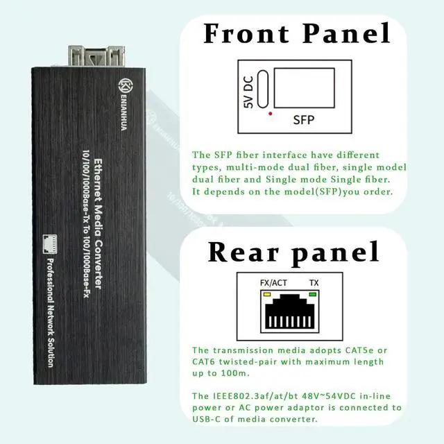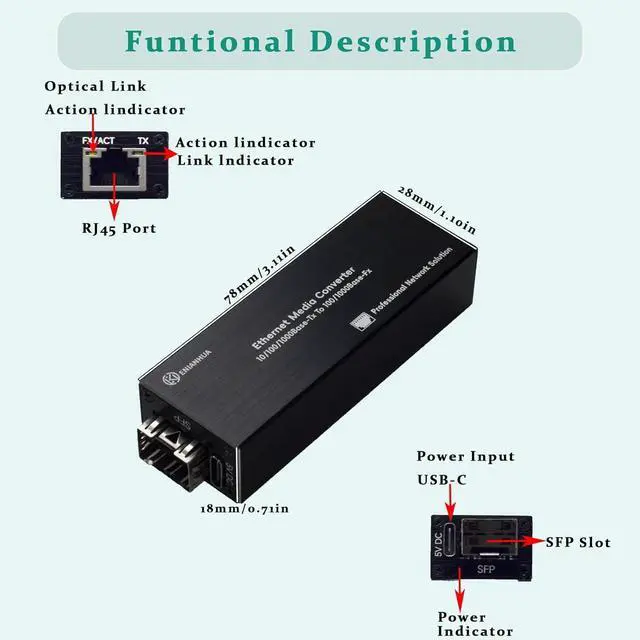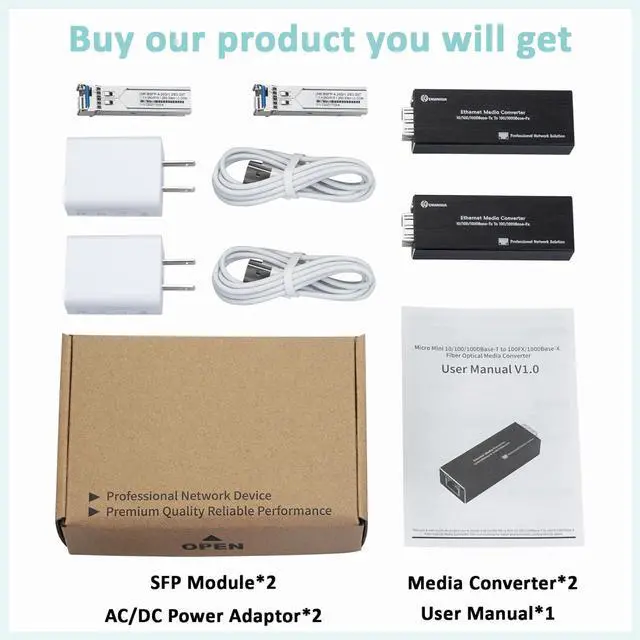 Versatile Connections for Broad Compatibility:Fully compatible with 10/100/1000Base-T Ethernet networks, the fiber media converter supports auto negotiation to bridge different speed networks and devices to a Gigabit fiber network.