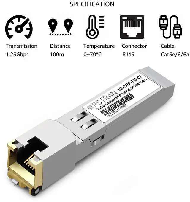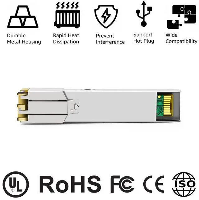 The video showcases the product in use.The video guides you through product setup.The video compares multiple products.The video shows the product being unpacked. This transceiver is compliant with IEEE STD 802.3, 802.3ab, and SFP MSA. Featuring low power consumption, the hot swappable 1G SFP transceiver is ideal for enterprise networking for LAN applications and different other networking places using copper connections.