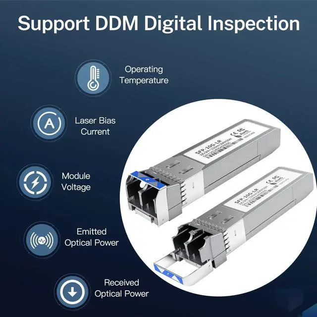 1. Wide Compatibility:Compatible with major brands including Cisco SFP-10G-LR, Ubiquiti UniFi UF-SM-10G, Meraki MA-SFP-10GB-LR, Mikrotik, Netgear, Fortinet, Supermicro, Broadcom, Linksys, Huawei, Aruba, HPE, D-Link, TP-Link, and more.
