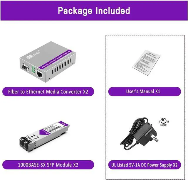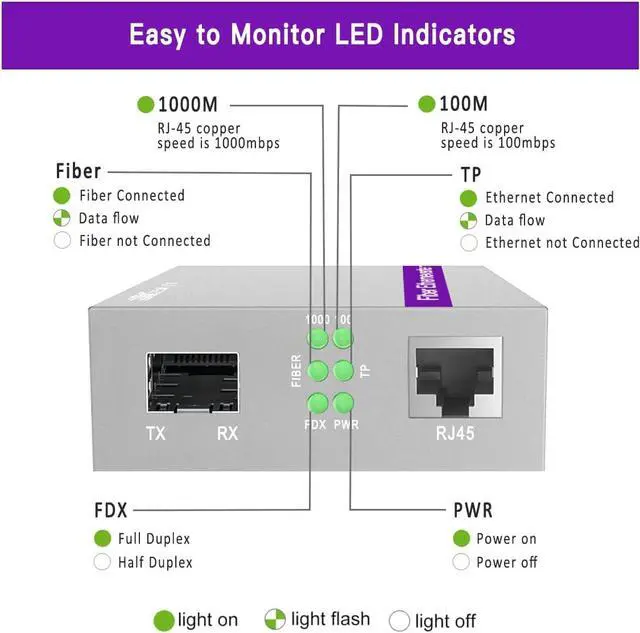 Fiber to Ethernet: Designed to enable free conversion between 1000BASE-SX fiber and 10/100/1000BASE-T copper media.