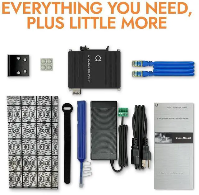 The auto MDI/MDI-X functionality and auto-negotiation for speeds from 100Mbps to 10Gbps ensure seamless connectivity and optimal performance. Installation is a breeze with flexible options for DIN-Rail or wall mounting, allowing you to secure the device in the most convenient and effective location for your setup. Advanced features such as a 20Gbps switching fabric, 16K jumbo frame support, and automatic source address learning and aging make the AN-UM-SMC-10G-IPOE-BT + MM-SFP-kit a robust and reliable choice for your network extension needs. Whether you're setting up a new network or upgrading an existing one, the AN-UM-SMC-10G-IPOE-BT + MM-SFP-kit provides the performance, reliability, and flexibility you need to ensure smooth and efficient operations in any industrial environment.