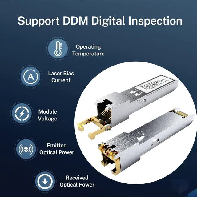 • 1.High-Speed Performance: 10PCS Gigabit SFP to RJ45 Copper Module with 10/100/1000M Auto-Negotiation, supporting automatic adjustment of speed and duplex mode based on link status. Achieves a data rate of 1.25Gb/s with an RJ45 connector and supports up to 100M transmission over CAT5e/CAT6 cables.