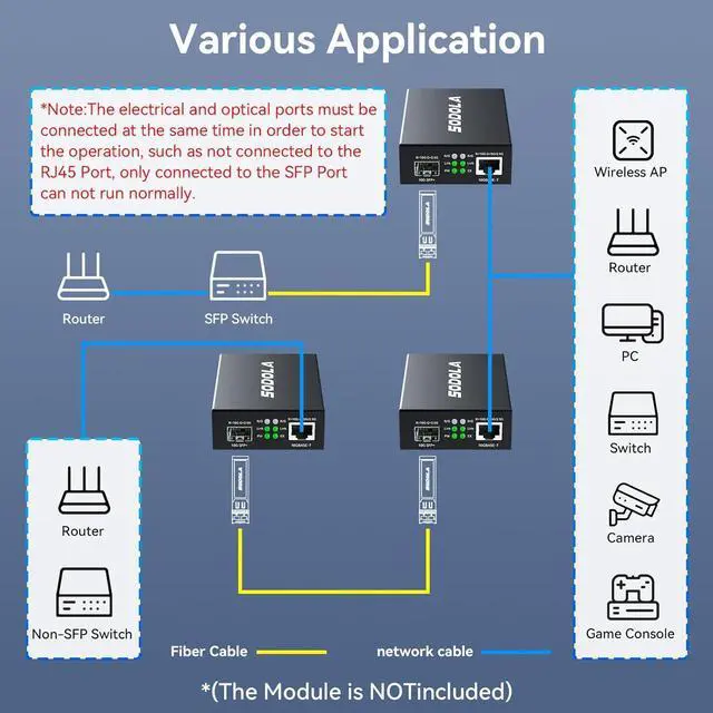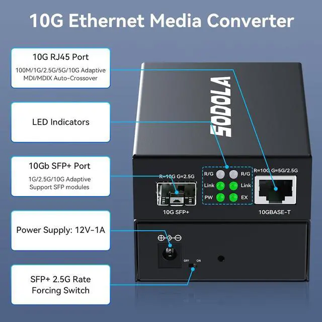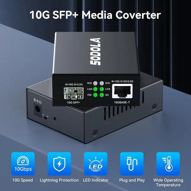 10GbE SFP+ Media ConverterInstantly converts 10GBase-T RJ45 SFP+ fiber signals for long-haul runs (3KM-100KM). CRITICAL: Requires matching SFP+ modules at BOTH ENDS (sold separately). Supports Single/Dual-mode & Single/Dual-fiber.(Optical/electrical modules NOT included with converter)