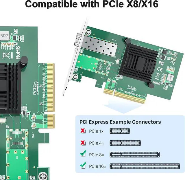 Ultra Fast Speed: Dual 10G SFP+ ports let you connect to 10Gb/s SFP+ transceiver module/DAC/AOC and upgrade your ethernet speed to 10Gb/s. Compare to Intel X520-DA1.