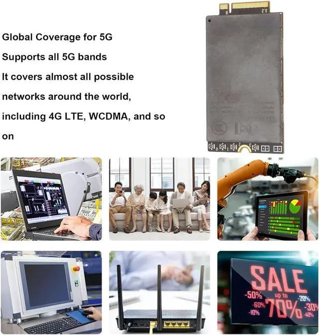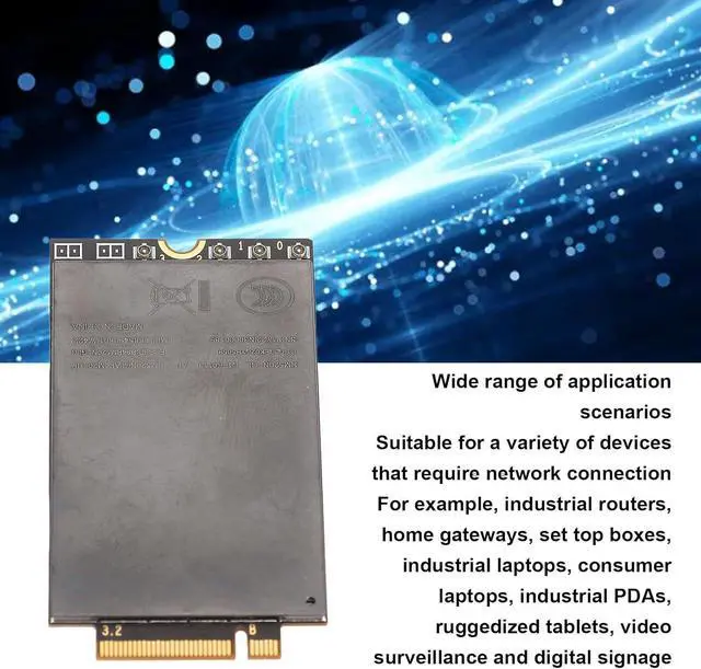 Applications: For a wide range of eMBB and IoT applications, including industrial routers, home gateways, set top boxes, industrial laptops, consumer laptops, industrial PDAs, ruggedized tablets, video surveillance and digital signage
