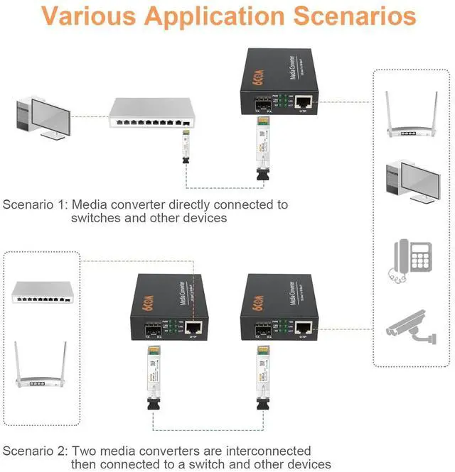 Convert fiber to Ethernet or vice versa,plug and play,the sfp+ port can compatible for mast of brand andthe maximum transmission distance depend on the types of sfp modules and fiber.