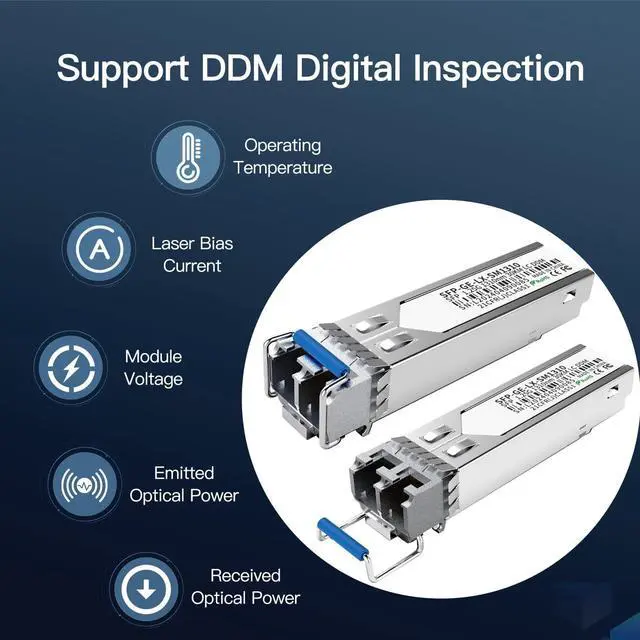 - Advanced Monitoring: Includes Digital Diagnostics Monitoring (DDM) for real-time monitoring of critical parameters like temperature and optical power levels, ensuring network stability and performance optimization.