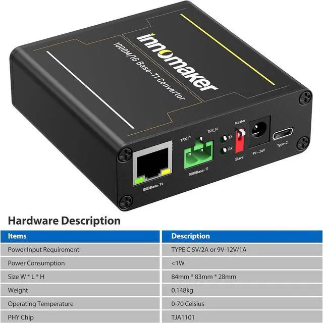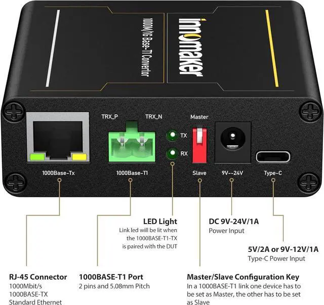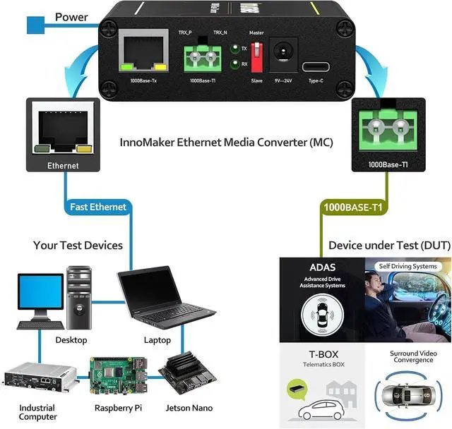 Next page RJ-45 Connector 1000BASE-T1 Port Master/Slave Configuration Key LED Light DC 9V-24V/1A 5V/2A or 9V-12V/1A MOLEX Adapter TE MATEnet Adapter USB to CAN Module Industrial Camera Module HiFi Audio Hat