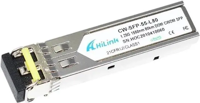 Fiber Optic Products / Fiber Optic Receivers1.25G 1550nm 80km DDM CWDM SFP TransceiverSmall Form Factor Pluggable (SFP) transceivers are compatible with the Small Form Factor Pluggable Multi-Sourcing Agreement (MSA). They simultaneously comply with Gigabit Ethernet as specified in IEEE STD 802.3 and 1x Fibre Channel as defined in FC-PI-2 Rev. 10.0 .They are compliant and lead-free. It's widely used with CWDM Mux Demux together.Features:Up to 1.25Gb/s dual data links-pluggable SFP footprint Uncooled DFB laser transmitter Duplex LC connectorUp to 80km on 9/125µm SMFMetal enclosure for lower EMI Single +3.3V power supply
