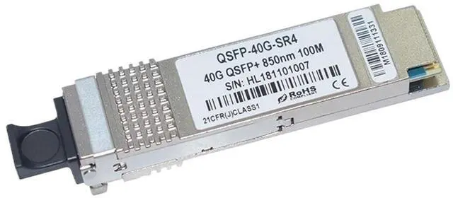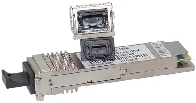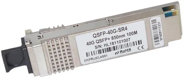 Fiber Optic Products / Fiber Optic Receivers40GBASE SR4 QSFP+ 850nm 100M MultiMode MPO ConnectorFeatures4 independent full-duplex channelsUp to 11.2Gbps data rate per channelMTP/MPO optical connectorQSFP MSA compliantDigital diagnostic capabilitiesCapable of over 100mTransmission on OM3 multi-mode ribbon fiberSingle +3.3V power supplyOperating case temperature:070CMaximum 1.5W operation power-6 compliantCompliant with IEEE802.3baCompliant with QSFP+ MSA: SFF-8436Application40G Ethernet 4X SDR DDR QDR40G Telecom connectionsRegulatory Compliance:ESD to the Electrical PINs: compatible with MIL-STD-883E Method 3015.7ESD to the LC Receptacle: compatible with IEC 61000-4-2 GR-1089-COREImmunity compatible with IEC 61000-4-3EMI compatible with FCC Part 15 Class B EN55022 Class B (CISPR 22B) VCCI Class BLaser Eye compatible with 21CFR 1040.10 and 1040.11 EN60950, EN (IEC) 60825-1,2 compliant with 2002/95/EC 4.1&42 2005747EC