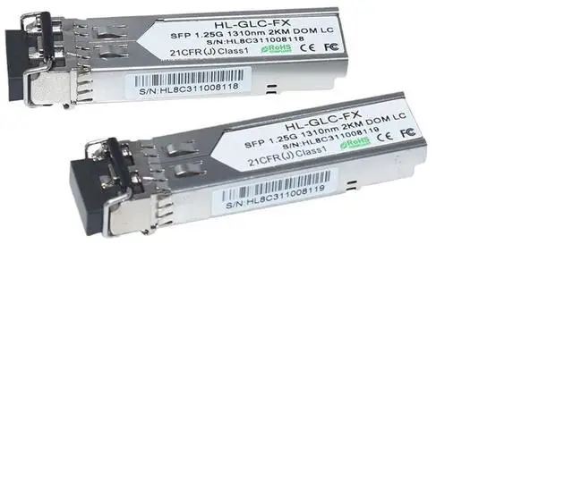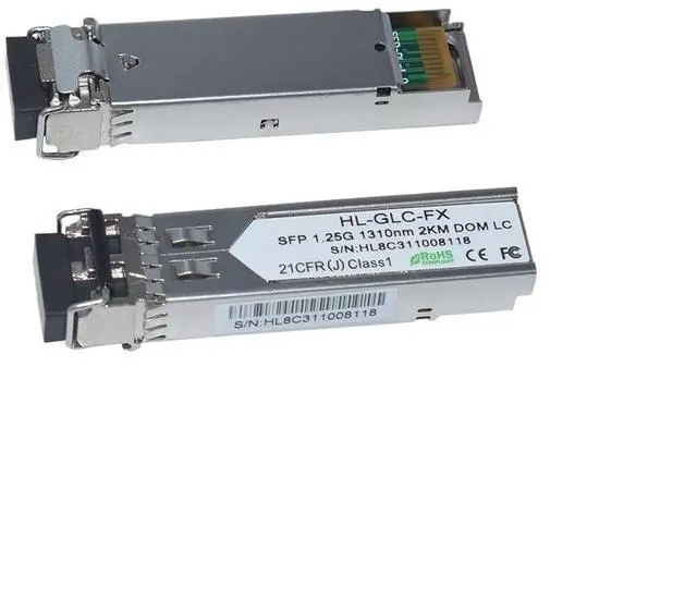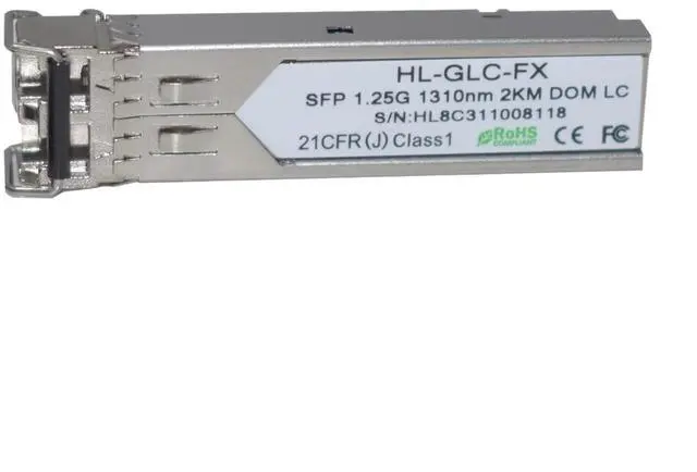 Fiber Optic Products / Fiber Optic Receivers1000BASE-SFP Multimode Fiber 1.25G 2KM 1310nm LC Transceiver SFP 1.25G 1310nm 2KM LCGeneralSmall Form Factor Pluggable (SFP) transceivers are compatible with the Small Form Factor Pluggable Multi-Sourcing Agreement (MSA). They simultaneously comply with 1.25Gb/s 1000Base-SX Ethernetand1.063Gb/s FiberChannel.They areRoHS compliant and lead-free.Product FeatureUp to 1.25Gb/s dual data links-pluggable SFP footprint 1310nm FPlaser transmitter Duplex LC connectorUp to 2km on 50/125µm MMFMetal enclosure for lower EMI Single +3.3V power supply
