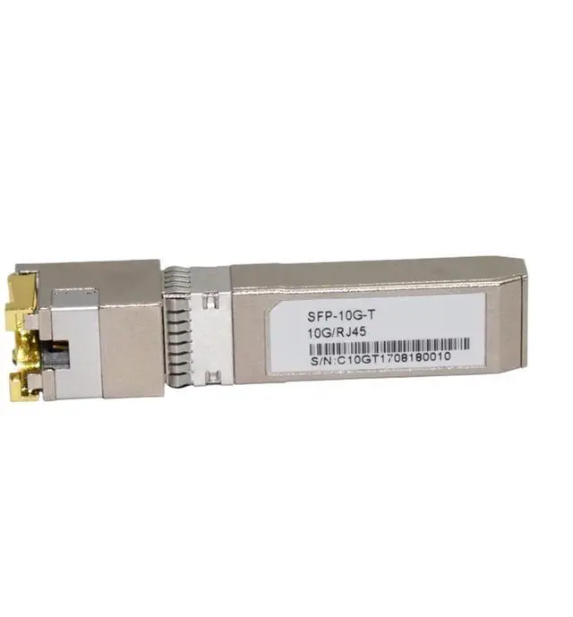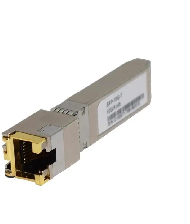 Fiber Optic Products / Fiber Optic Receivers10G-T RJ45 SFP Fiber Optical Module 10Gb/s Transceptor Compatibile Fiber Optical Transceiver ModuleGeneralSFP+-10GBASE-T Copper Small Form Pluggable (SFP) transceivers are based on the SFP Multi Source Agreement (MSA) . They are compatible with the 10Gbase-T / 5Gbase-T / 2.5Gbase-T / 1000base-T standards as specified in IEEE Std 802.3 . SFP+-10GBASE-T uses the SFP's RX_LOS pin for link indication. If pull up SFP's TX_DISABLE pin, PHY IC be reset.Product FeatureSupport 10Gbase-T / 5Gbase-T / 2.5Gbase-T / 1000base-T-pluggable SFP footprintCompact RJ-45 connector assembly compliant and lead-free Single +3.3V power supply 10 Gigabit Ethernet over 6a cable- Max 30MAmbient Operating temperature: 0C to +65CApplication10 Gigabit Ethernet10G SFP+ TransceiverPart NumberApplicationData RateWavelengthDistanceConnectorTypeHL-SFP-10G-SRSFP+ 10GBASE-SR10G850nm300mLCHL-SFP-10G-LRSFP+ 10GBASE-LR10G1310nm10kmLCHL-SFP-10G-LRMSFP+ 10GBASE-LRM10G1310nm220mLCHL-SFP-10G-ERSFP+ 10GBASE-ER10G1550nm40kmLCHL-SFP-10G-ZRSFP+ 10GBASE-ER10G1550nm80km