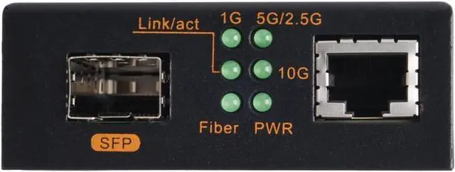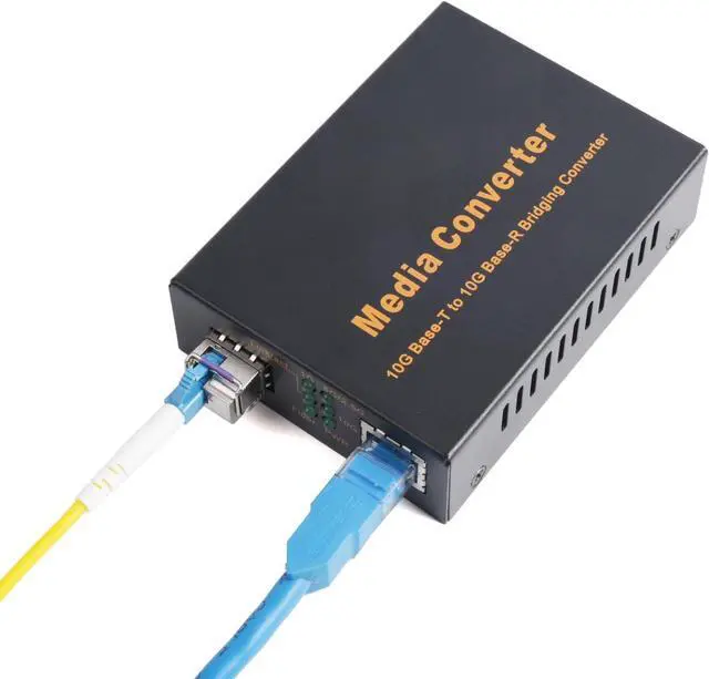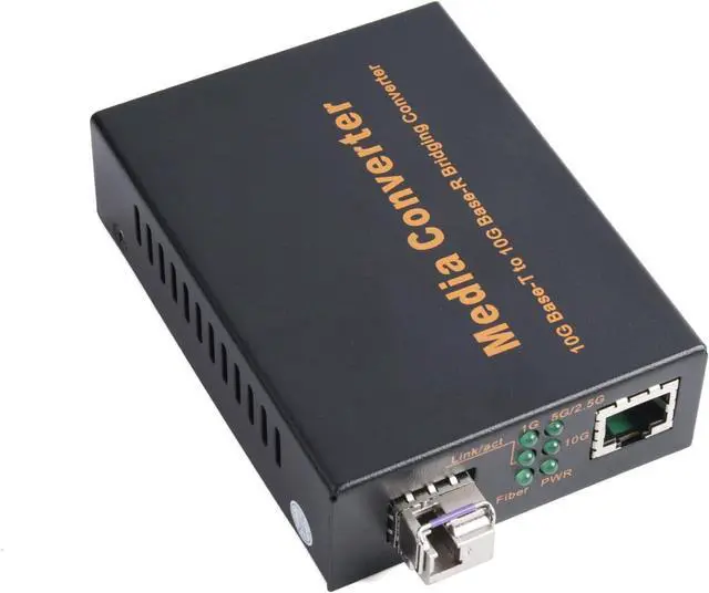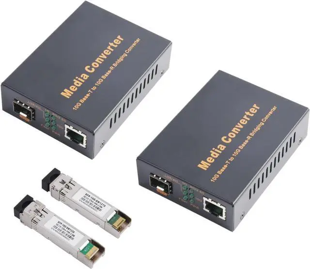 This 10G Ethernet Media Converter comes with an external power supply (DC 5V with a US Plug power adapter). It's expertly designed to transmit and receive 100/1000/10000Mbps data over optical fiber. The electrical interface automatically adjusts to a 1000Mbps or 10000Mbps Ethernet rate without any user intervention, while the SFP optical interface steadfastly operates at 10Gbps. Both interfaces are built to endure extreme temperatures, ensuring reliable performance in harsh environmental conditions.