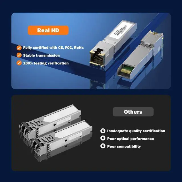 BrandReal HDProduct10Gb SFP+ to RJ45 Module Transmission Range262Ft (80m)Transmission Rate10Gbps / 2.5Gbps / 1GbpsCable TypeCAT6a or higher level pure copper ethernet cableOperating Temperature32 to 140°F