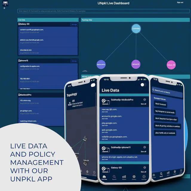 With Live Network Traffic View, you can monitor real-time data traffic directly through the UNpkl app, giving you full visibility over your network. Manage internet access with ease using Natural Language Parental Controls, allowing you to block specific websites or set custom rules for devices and users all with a simple text command.
