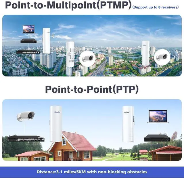 Ideal for Surveillance and IoT: The AdaLov CPE361 Long Range WIFI bridge is perfect for connecting security cameras, sensors, and other IoT devices across large areas, providing seamless and secure data transmission