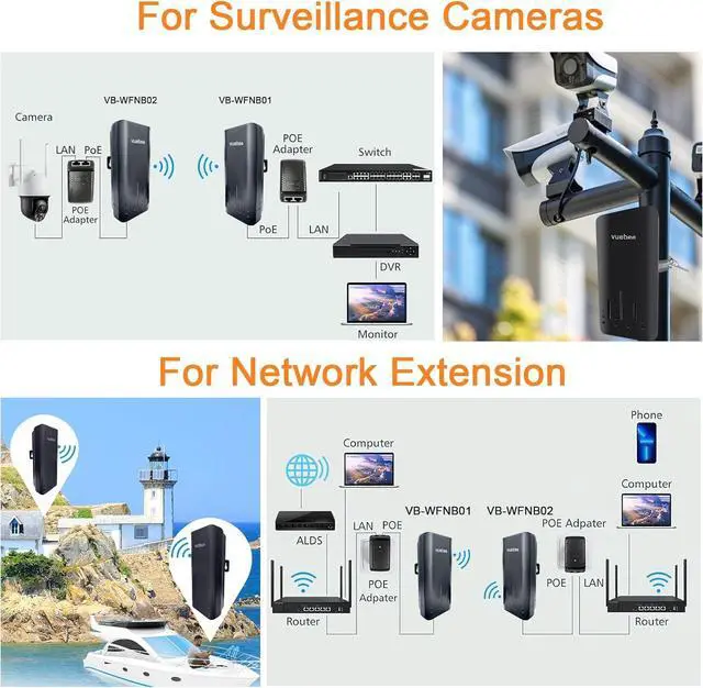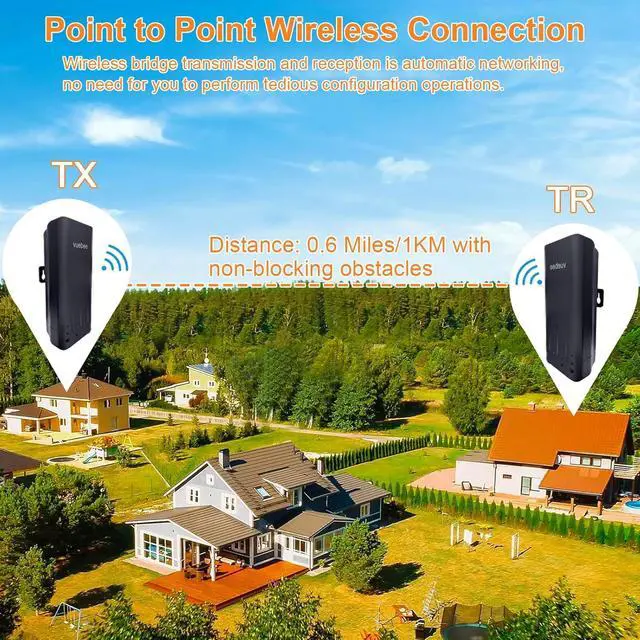 1 km Long Range Connection: The outdoor wifi bridge comes with two 5dBi gain antennas, providing stable wireless transmission up to 1 kilometer in line-of-sight. It extends the wifi to remote locations like garages, barns, workshops, surveillance systems and building site.