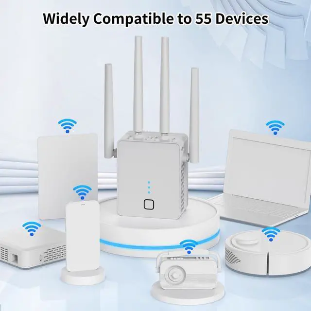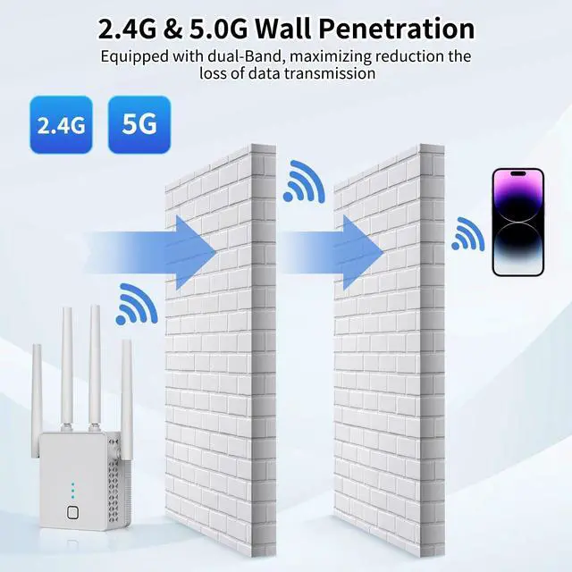Blazing Fast SpeedsFeaturing 1200Mbps high-speed transmission, this internet booster for wifi with dual-band(2.4G and 5.0G) delivers extremely fast connectivity, enabling smooth streaming, lag-free gaming, and rapid downloads for multiple devices simultaneously.