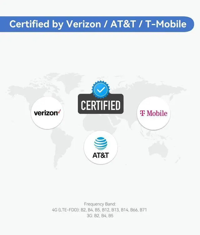 CERTIFIED BY VERIZON/AT&T/T-MOBILE - 3G/4G LTE CAT4 wireless connection, Compatible with major carriers and Certified by Verizon/AT&T/T-Mobile.