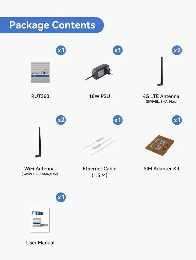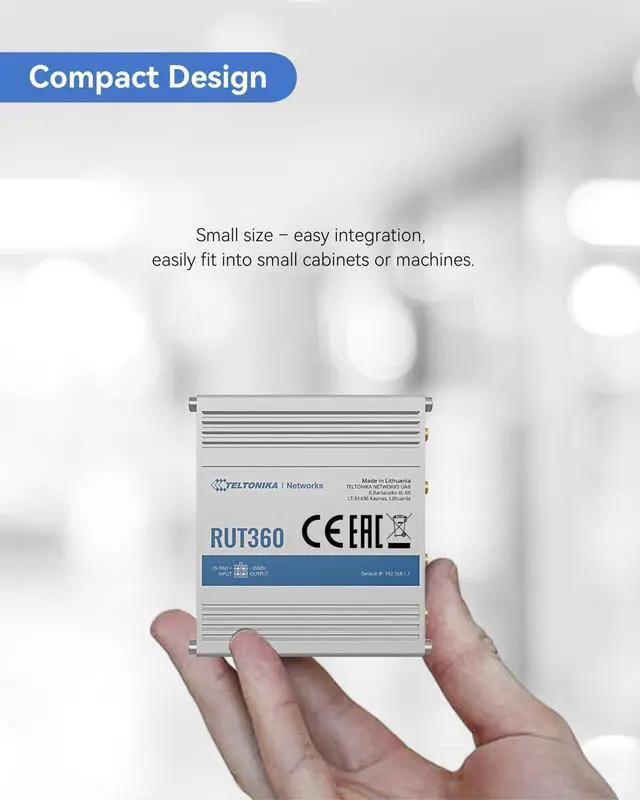 UPDATED VERSION of RUT240 - RUT360 keeps RUT240 compact shape in a rugged aluminum housing but offers more processing power and increased cellular speeds up to 300Mbps with Carrier Aggregation.